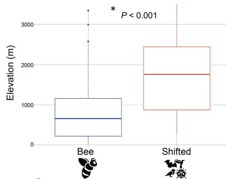 In a large assessment of pollination biology and environment evolution of the plant family Melastomataceae, we could show that across the family, bee-pollinated species occur at significantly lower elevations than species which have shifted away from bee pollination. Importantly, these environment and pollinator shifts have not happened independently of each other, but reconstructing the evolutionary history of both, we could show that environment shifts very likely preceded, and hence triggered pollinator shifts. Thus, Melastomataceae likely colonized the uplifiting tropical mountains within the past 30-15 million years, and only within these mountain environments, shifted from bee to vertebrate pollinators (usually less than 5 million years ago). The likely driver of these pollinator shifts is the fact that bee pollinator availability is much lower in tropical montane environments (e.g., cloud forests) than the availability of vertebrate pollinators.